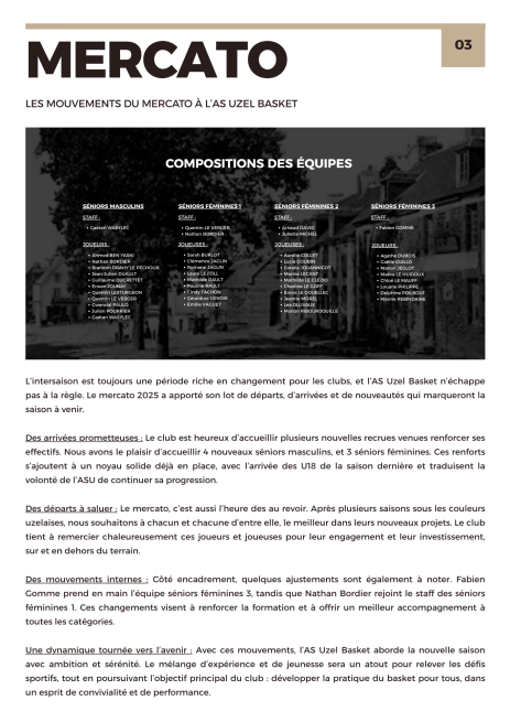 Premier numéro de Time Out, le magazine de l'AS Uzel Basket disponible dans tous les commerces partenaires.